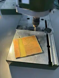 Pédagogiques : – Mr Lucas Matérielles : – Une imprimante – Un transparent – Une plaque de PCB photosensible – Une machine à UV – Des produits chimiques – Une machine de gravure par corrosion – Une perceuse d’établi – Un forêt |