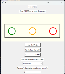 Cependant, la carte fournie pour interfacer le sonomètre et l’ordinateur ne nous a été donné que vers la fin du projet afin de nous faire travailler sur le logiciel indépendamment du matériel. Nous avons donc dû coder un simulateur qui envoie des données factices comme si elles étaient générées par la carte.
